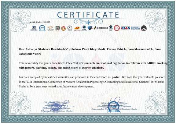 در پایان مدرکی مستند بر عضویت و شرکت فعال شما در رابطه با کنگره بین المللی مشابه نمونه زیر اعطا خواهد شد